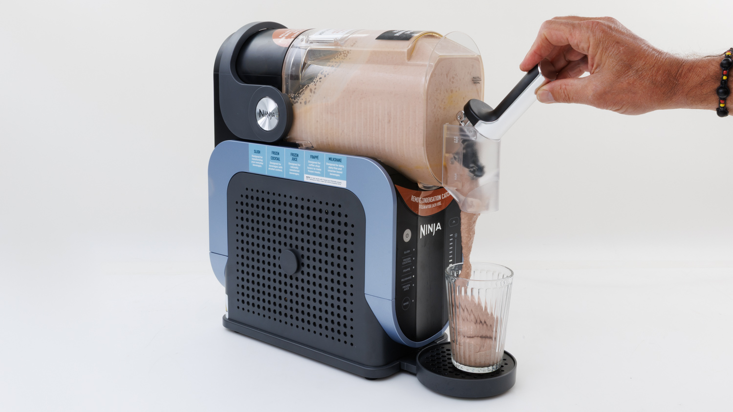 Making a frozen chocolate milkshake in the Ninja Slushi.