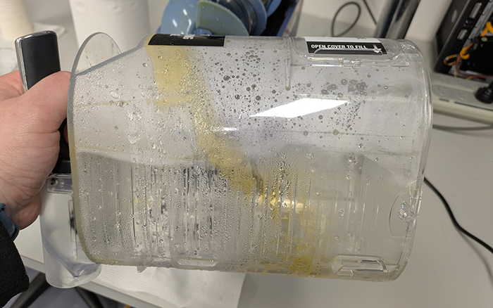 Even after multiple rinse cycles, remnants of the slushies remained at the top of the vessel