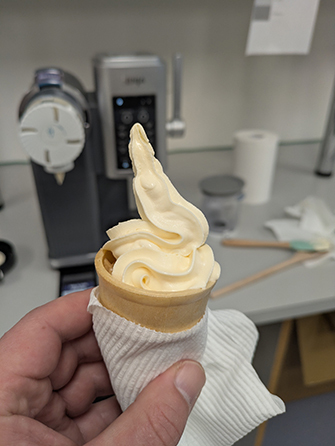 Elias was impressed with how light and fluffy the soft serve was. He said, “it was very enjoyable but the novelty didn’t last long, especially when it came time to clean the machine.”