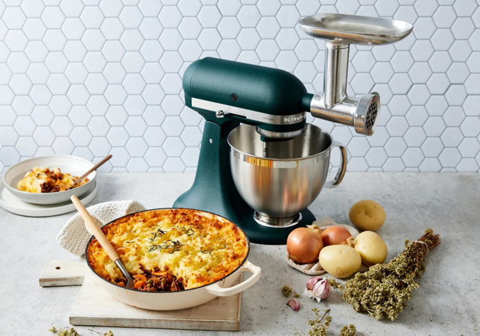 A mincer or grinder attachment can help you create a wide range of foods from scratch, such as burgers or sausages. Image credit: KitchenAid.