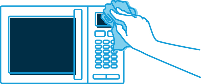 Make sure doors seal properly and gunk doesn’t build up around buttons or seals. Anything that’s made its way into cracks or crevices may need a soft toothbrush, cotton bud or toothpick to gently prise away any hard foods, but take care not to rub or scratch the surface as this may damage it. Never use anything metal and make sure the microwave is unplugged before you start.