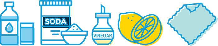 For tougher, harder stains that don’t respond to warm soapy water, make a paste with water and bicarb soda, and scrub gently with a non-scratch sponge.