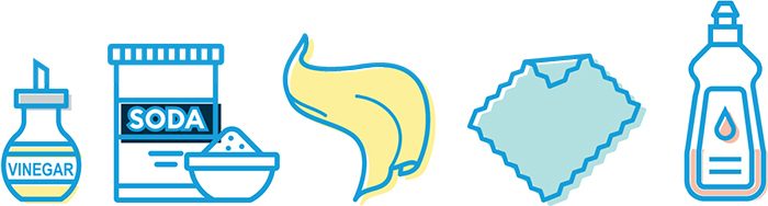 White vinegar, baking soda, a soft cloth, a microfibre cloth and washing-up liquid are ideal ingredients for cleaning your oven.