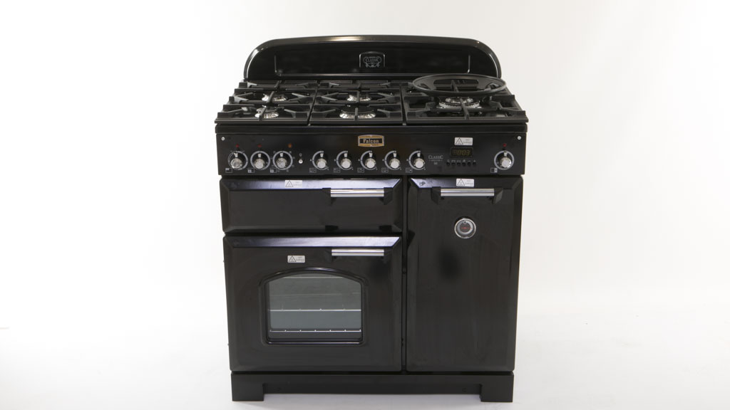 One example is the Falcon Classic deluxe CDL90DF + Colour freestanding oven. It’s a dual-fuel model with a gas cooktop. While it’s 90cm wide in total, its internal oven volume is just 51L in the main section.