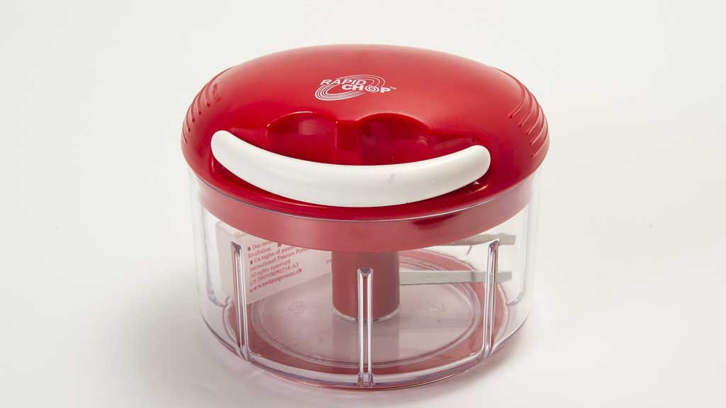 Essentially a manual food processor, the Rapid Chop uses a pull-string to spin two stainless-steel blades inside a plastic container. Our panel found it a breeze to use, but said it took longer than the claimed three pulls to produce finely chopped onions. There were also noticeable differences in size between onion pieces.