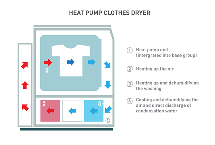 Heat pump condenser dryers use the same heat exchange principles as a reverse-cycle air conditioner to heat the air they use to dry your clothes.