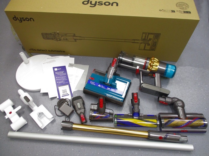 The Dyson V15s Detect Submarine Complete comes with a range of cleaning heads and accessories, as well as a dock to hold the vacuum and tools.