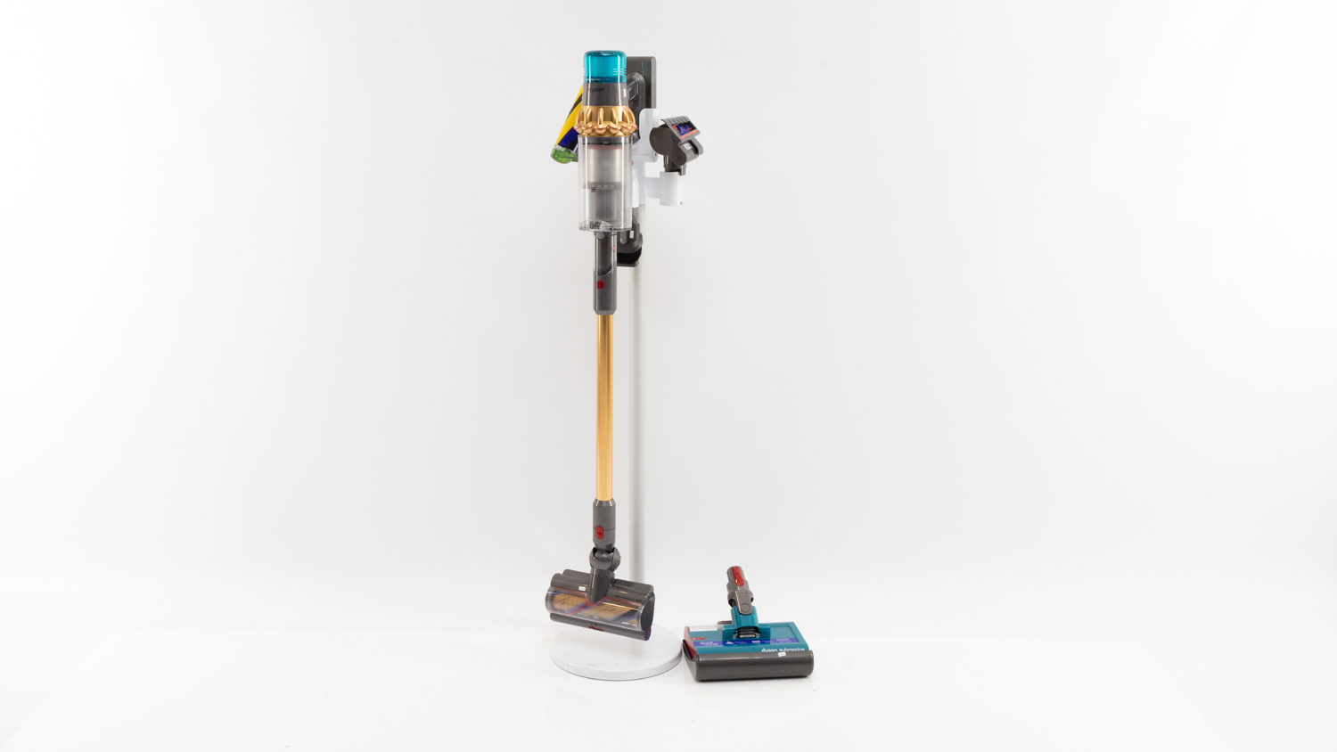 One of the latest Dyson vacuums – the Pencilvac Fluffycones – comes with a magnetic charging dock that includes a base and stand to store your vac, and a charger.