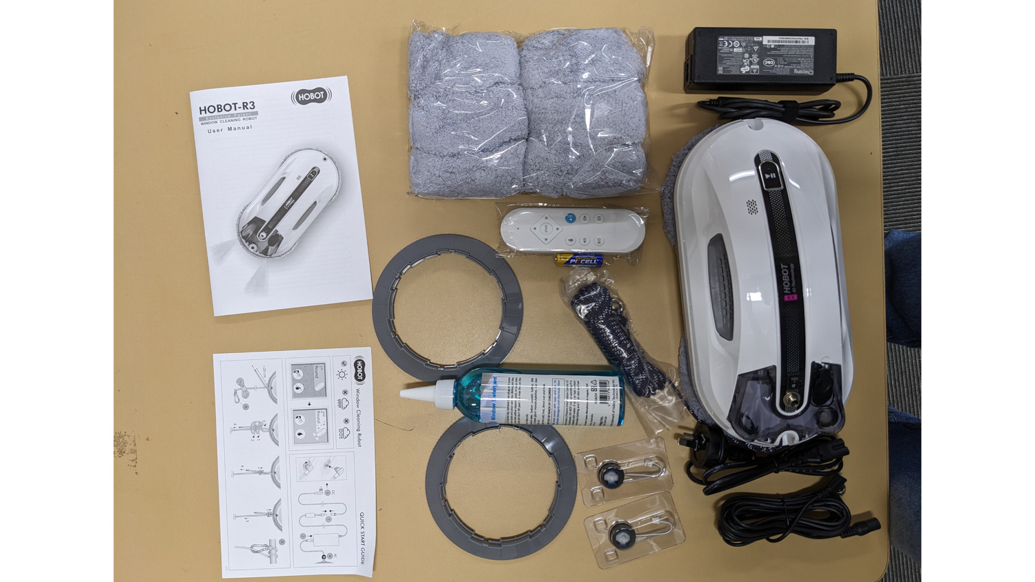 During testing, the Hobot-R3 fell off the window once. The unit was caught by the safety cable and was undamaged. However, the two cleaning pads detached and fell to the ground. They are quite light (32g each) so may not cause any damage, but could be hard to recover depending on where they fall.