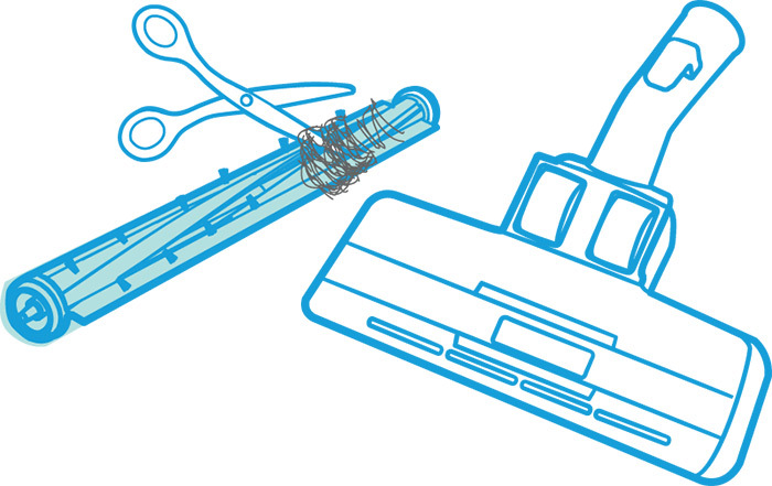 Clean the roller head and bristles of any dust, lint and hair – a small brush can help with this. If the roller is very dirty, you can often wash it under a tap. Make sure it’s dry before you re-install it.