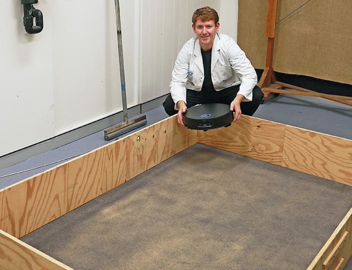 Adrian assesses another robot vac in our carpet cleaning test.