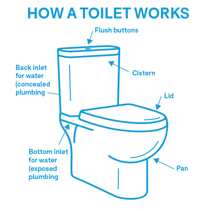 The other main consideration is where the water inlet is – this is how the water gets to the cistern to flush. This will matter if you’re installing a new toilet. Often toilets can cater for either, but if not you might need a plumber to make some changes.