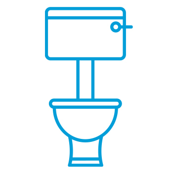 When the flush is triggered, the water flows from the cistern into the pan and moves the waste to the sewer line.