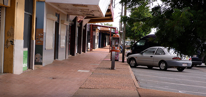 Many shops in the main street of Tennant Creek are boarded up.