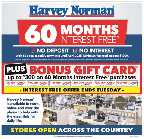 The issue for the regulator was that advertisements for the Harvey Norman/Latitude Finance 60-month interest-free offer neglected to make clear that you needed to sign up to a credit card to access it.