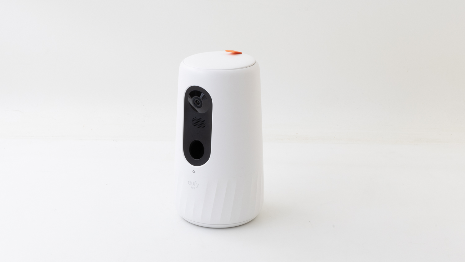The Eufy sits on the floor or table, and has a small compartment for dog treats that can be flung to your pet using the app. The camera itself has a 170° wide-angle view (which creates a “fish-eye” look) and is designed to rotate up to 270° to track and follow your pet if it walks within this range.
