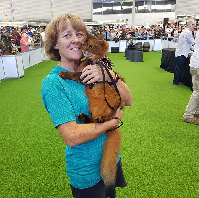 Cat owner Lynne Moorman with Tarek at the Sydney Royal show in 2019.