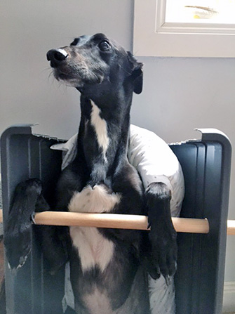 Both were diagnosed with megaesophagus late last year, a disease that enlarges the oesophagus and makes eating and drinking difficult, sometimes so difficult that animals have to be put down. Dogs have to eat in an upright position and often can’t consume enough to stay healthy.