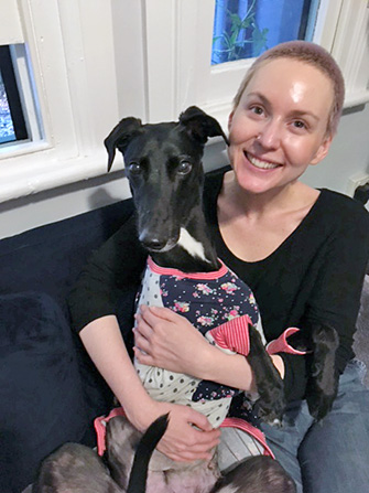 Rebecca Cleaver with her rescue greyhound Joanie.