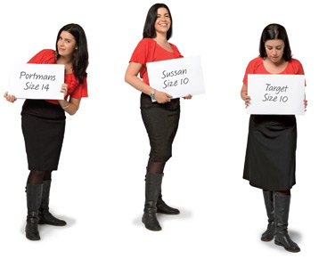 To test just how much difference there can be between clothing sizes, I head to Sydney’s Pitt Street Mall. My mission? To buy a straight black skirt. Sounds easy. Less easy was working out what size I was.