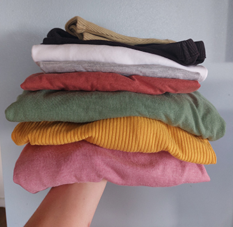 A rainbow of colours and styles: basics sourced from op shops.