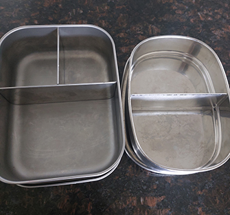 For his lunch, I use a collection of stainless steel containers I’ve built up from op shops and Aldi over the years – I just pop them in his insulated lunch bag. I’m happy to buy a new lunch bag every couple of years as they do get kind of gross, but I expect the metal containers to continue to be used into high school and beyond (admittedly quite a few have been lost at school already).