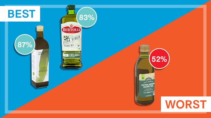Best: Cockatoo Grove Organic Australian Extra Virgin Olive Oil (87%) and Bertolli Extra Virgin Olive Oil Organic Fruity (83%)