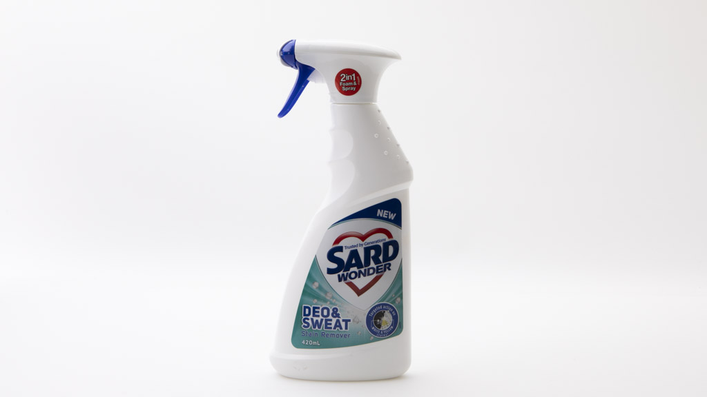 Sard Wonder Deo and Sweat Stain Remover scored just 52% in our test. By comparison, detergent with water (no stain remover) also scored 52%. This product also didn’t do much for perspiration stains: it scored just 46% for our perspiration test.