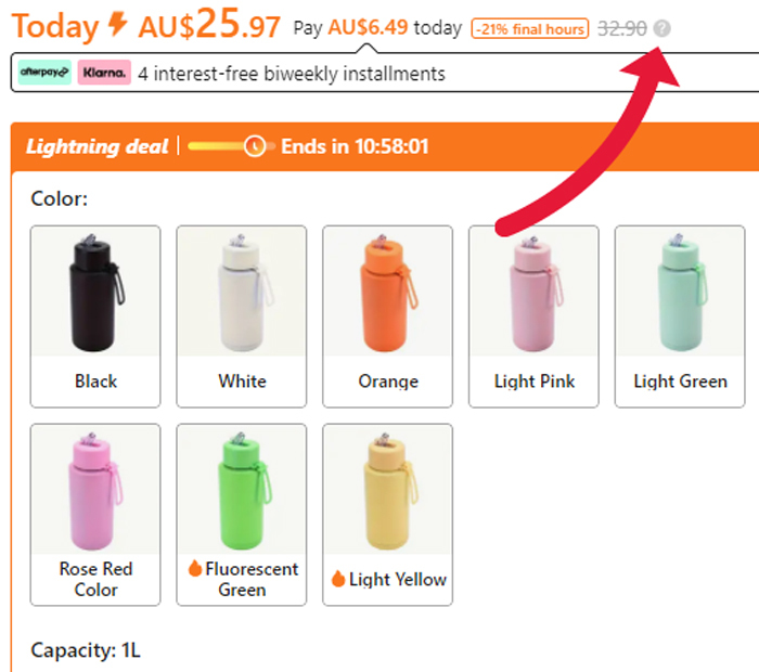 Remaining markdown displays now come with a disclaimer saying they’re based on the “most common price” at which the product was listed by the relevant seller on Temu’s Australian platform within the past 60 days.