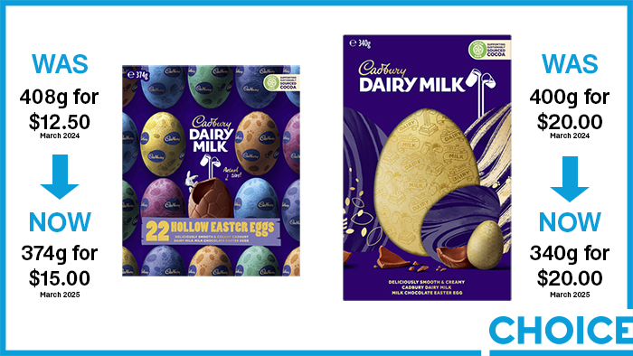 CHOICE has uncovered several examples of the Easter shrinkage, which has Australians paying as much as 33% more per 100g of chocolate in some cases.