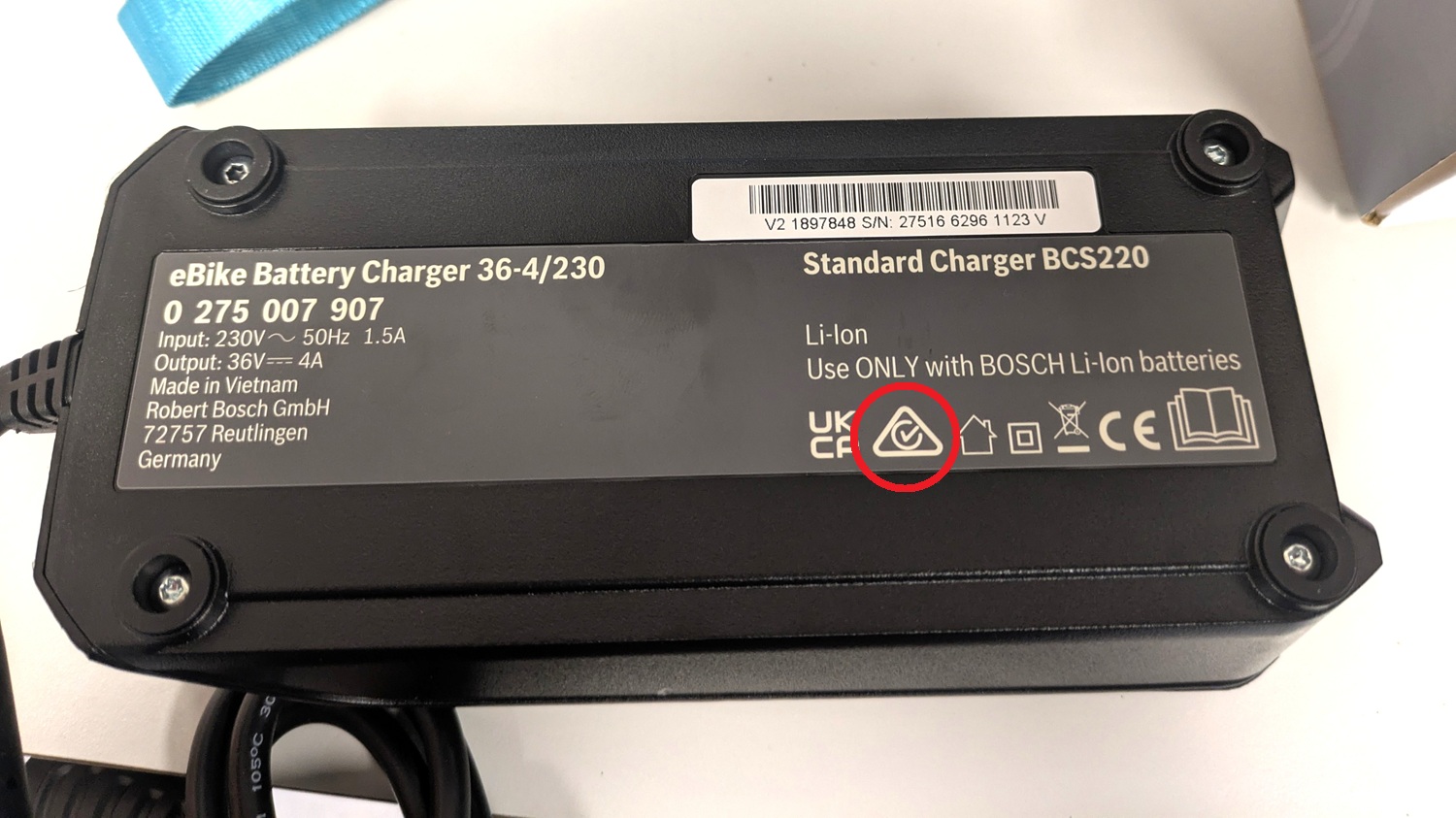 Finally, make sure the charger displays the Australian Regulatory Compliance Marker (pictured below).